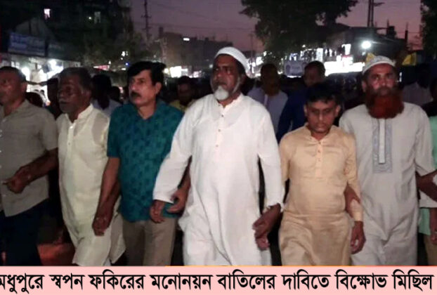 মধুপুরে স্বপন ফকিরের মনোনয়ন বাতিলের দাবিতে বিক্ষোভ মিছিল
