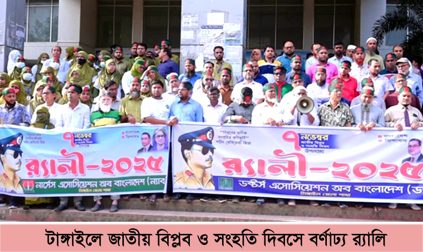 নিজস্ব প্রতিবেদক: টাঙ্গাইলে জাতীয় বিপ্লব ও সংহতি দিবস উপলক্ষে এক বর্ণাঢ্য র্যালি অনুষ্ঠিত হয়েছে।
