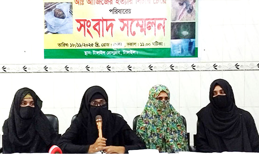 নিজস্ব প্রতিবেদক: কালিহাতী উপজেলার নারান্দিয়া ইউনিয়নের মাইস্তা নয়াপাড়া গ্রামের পিতা হত্যার বিচার চেয়ে দ্বারে দ্বারে ঘুরে অবশেষে টাঙ্গাইল প্রেসক্লাবে সংবাদ সম্মেলন করলেন তাঁর চার কন্যা। মঙ্গলবার, ১৮ নভেম্বর সকালে টাঙ্গাইল প্রেসক্লাব মিলনায়তনে সংবাদ সম্মেলনে লিখিত বক্তব্য পাঠ করেন মৃত আব্দুল আজিজের মেয়ে আনিকা।