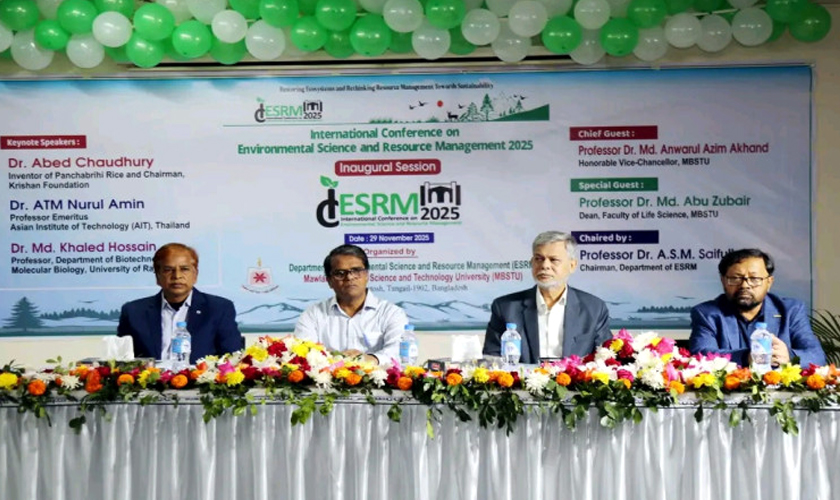 মাভাবিপ্রবি প্রতিনিধি : মাওলানা ভাসানী বিজ্ঞান ও প্রযুক্তি বিশ্ববিদ্যালয়ের এনভায়রনমেন্টাল সায়েন্স অ্যান্ড রিসোর্স ম্যানেজমেন্ট বিভাগের উদ্যোগে ইন্টারন্যাশনাল কনফারেন্স অন এনভায়রনমেন্টাল সায়েন্স অ্যান্ড রিসোর্স ম্যানেজমেন্ট-২০২৫ অনুষ্ঠিত হয়েছে।