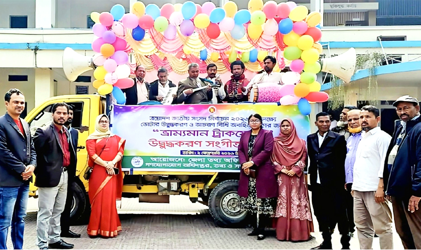 টাঙ্গাইল জেলা তথ্য অফিসের আয়োজনে আসন্ন গণভোট ও ত্রয়োদশ জাতীয় সংসদ নির্বাচন-২০২৬ উপলক্ষে ট্রাকযোগে ভ্রাম্যমাণ উদ্বুদ্ধকরণ সংগীতানুষ্ঠান
