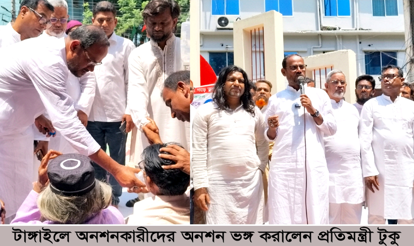 টাঙ্গাইলে অনশনকারীদের অনশন ভঙ্গ করালেন প্রতিমন্ত্রী টুকু
